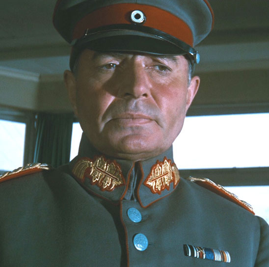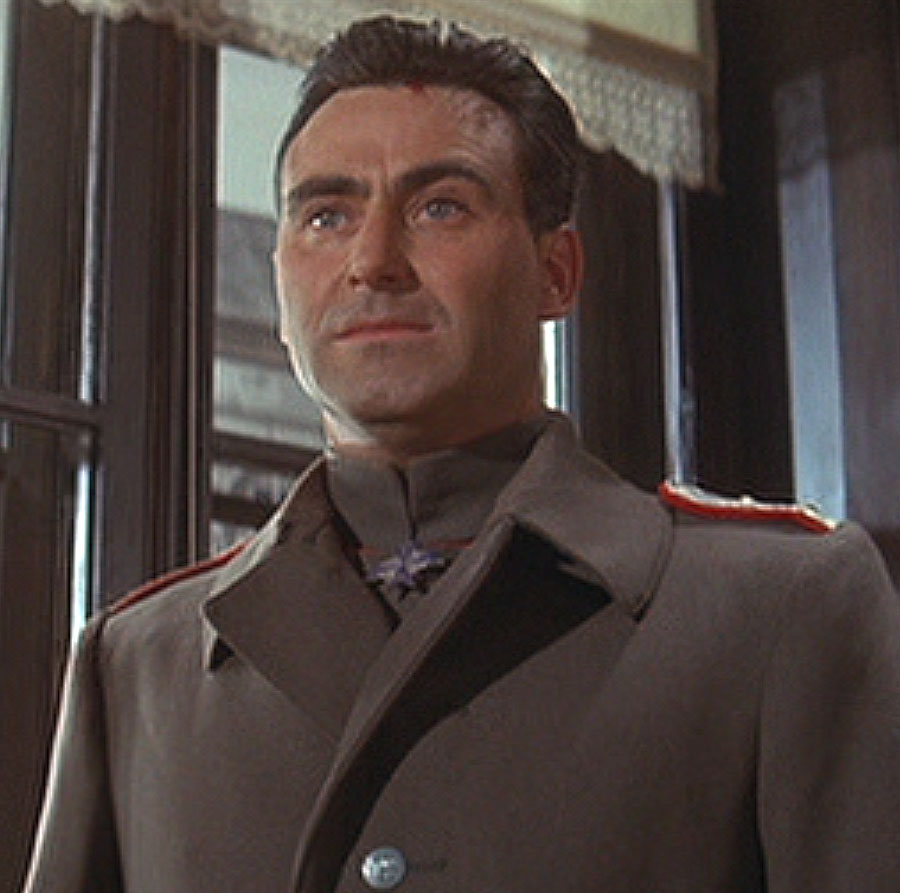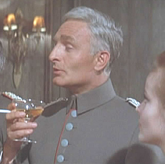 “Herr General, I see now I have notions of honor which are outdated.” Karl-Michael Vogler as Otto Heidemann. Vogler made his first English-language appearance in Those Magnificent Men in Their Flying Machines (on which Derek Piggott also got his start as a stunt pilot). In 1970 he appeared as Erwin Rommel, opposite George C. Scott in Patton. After that he worked primarily in Germany. He passed away in 2009.