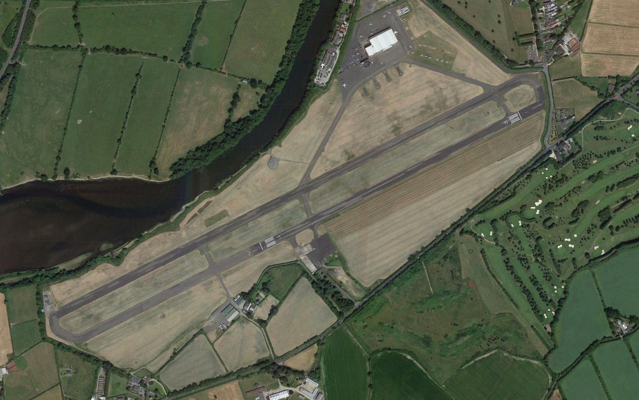 Given time and material constraints, some sacrifices to authenticity had to be made. The PPS Pfalz was a rebuilt de Havilland Gipsy Moth with a 4-cylinder 140-hp Gipsy Major engine, including a pair of fake cylinders and exhausts to enable it to pass for the original Pfalz’s 160-hp Mercedes inline-6. Similarly, the Bitz triplanes used Siemens-Halske SH-14 radials instead of Oberursel rotaries. Gipsy Queen 3 200-hp 6-cylinder inlines powered both the S.E.5as and D.VIIs; since the Fokkers’ original Mercedes weighed almost twice as much, they required some 200 pounds of nose-ballast for balance. Rousseau named its models the D.VII-65. “Most of the aircraft for The Blue Max were constructed in less than five months,” Piggott remembered, “and were flown for the first time only days before the filming began.” There was a friendly competition among the builders to deliver first. PPS took the prize with its Gipsy Pfalz. On the other hand, Rousseau delivered its D.VIIs by actually flying them from France to the set in Ireland, their German crosses and lozenge camouflage no doubt raising eyebrows below. Behind-the-scenes home movie: aircraft of The Blue Max, Baldonnel, 1965. (Silent) The PPS D.III reportedly flew well, though with heavy controls. On the other hand, the Hampshire Aero Club’s all-wood Pfalz earned the nickname “Rubber Wings” during filming. The steel-tube S.E.5as were strong and maneuverable, said to be easy to fly, but the D.VIIs were reportedly very heavy and—though their Gipsy Queens ran at twice the rpm of the original Mercedes—under-powered. Likewise the Dreideckers, originally famous for their agility, suffered from the lack of rotary engine torque. Garrison reported, “The [Bitz] triplane has the flying characteristics of a Link Trainer.” Searching for a properly European location, since the Flanders fields were now in the most intensely populated, smoggy and air-trafficked part of the continent, the producers settled on Ireland. The aircraft ground scenes were shot at Weston Aerodrome near Dublin. In the film’s final sequence, Casement Aerodrome, to the southeast, stood in for Berlin Tegel. (Tempelhof wasn’t built until 1927). Back in 1928, when it was still named Baldonnell, Casement had been the site of a German aviation milestone, when a single-engine Junkers W 33, the Bremen, departed there on the first successful east-west crossing of the Atlantic. Locations![]() The exteriors for “Berlin” in The Blue Max were shot in and around Parliament Square, Dublin. The tower-like structure at left center is the Campanile bell tower of Trinity College. ![]() The Trinity College chapel served as German headquarters. ![]() Weston Aerodrome, 1965. The grass field is now overlaid with a modern runway and taxi lane. The steeple in the right-distance may be The Wonderful Barn, about a mile away across the River Liffey. Mouse over the aerial view below to pinpoint the film site (all hangars and sets long since demolished), or click for map view.