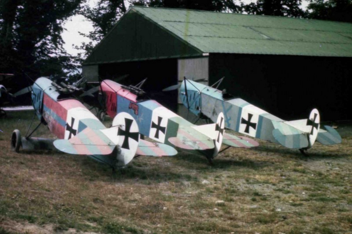 The Fokker DR.1 triplanes built by Bitz Flugzeugbau GmbH of Augsburg, West Germany, for The Blue Max. Not part of the sale to the Fighting Air Command, they have had wildly different subsequent histories.