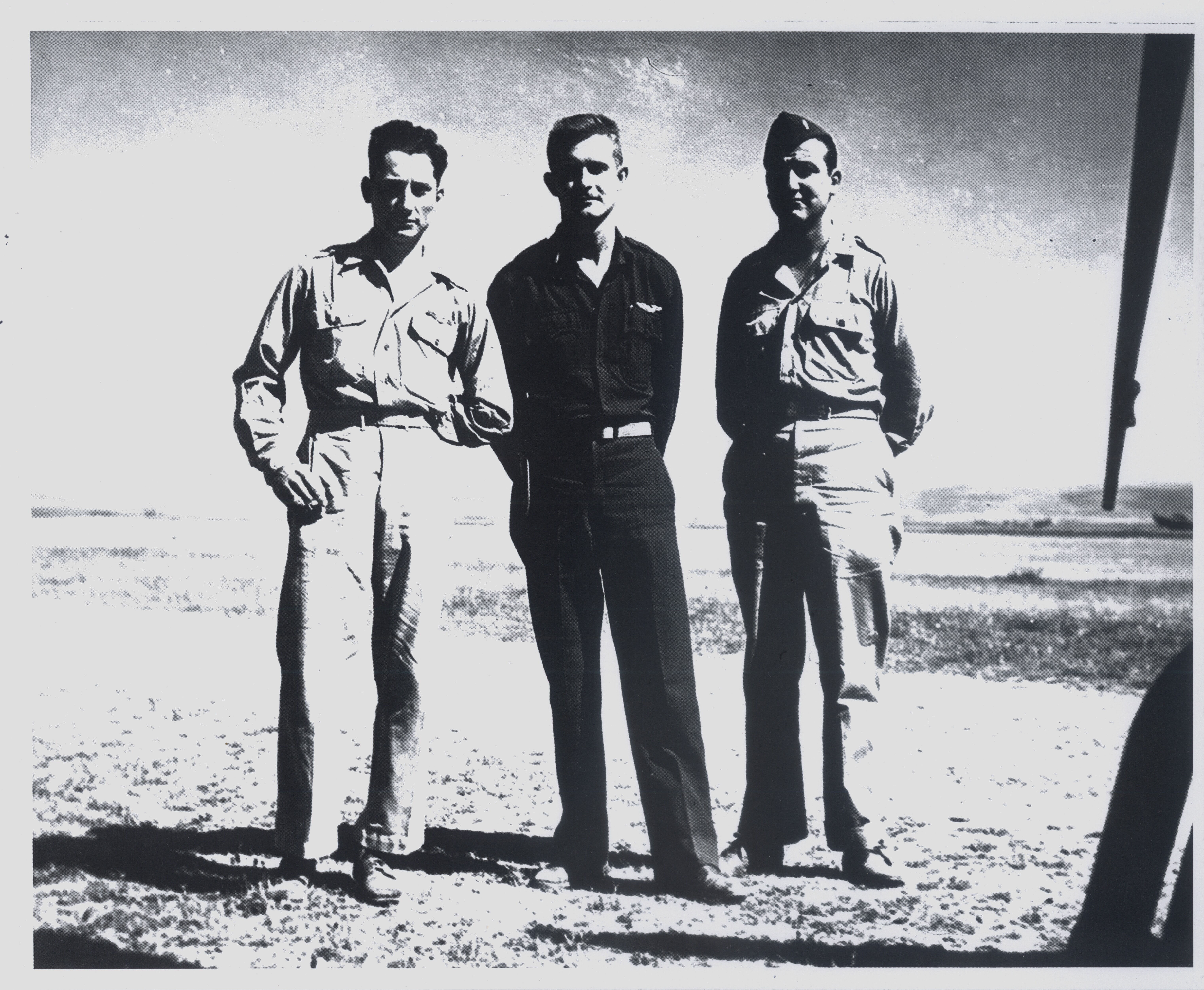 L-R: Lt. Jesse “Blackie” Oliver, Lt. Louis Curdes, Lt. Ralph C. Embrey, 95th FS, 82nd FG.
